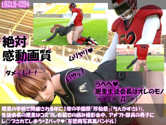 【▲200】廻里の学校で開催される年に1度の学園祭『珍粕祭』(ちんかすさい)。生徒会長の廻里はコスプレ衣装での囲み撮影会中、アメフト部員の男子にレ○プされてしまう#2バック